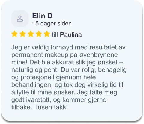 Flere kurs og sertifiseringer underveis, utfyller kunnskapen og veggene i studioet. Alt, for å kunne gi deg en trygg og tilfredsstillende tid i mine hender. Fokuset mitt er kvalitet og perfekt resultat, derfor har jeg valgt å spesialisere meg kun innen PMU.